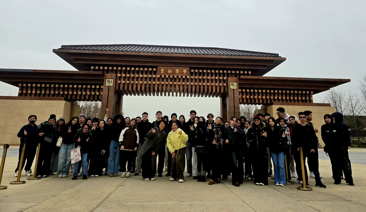 此次研学依托新郑地区独特的历史文化资源,通过行走、观察、体验和对话,让留学生不仅“看见”中国文化,更能够进入到文明叙事之中,在亲历中形成对中国历史更真实、更完整的理解学校与学院将该研学活动与《中国历史》《中国文化概况》《中国旅游地理》三门文化课程紧密结合,通过“课堂学习+实地探访+文化体验”三位一体的教学模式,让教学内容真正从教室走向田野、从文本走向生活。活动以中华文明时间线为主轴,设计了参访黄帝故里、新郑博物馆、郑国车马坑、西亚斯汉画馆、欧阳修陵园、新郑南街古巷、考院博物馆以及好想你红枣小镇等研学节点,充分体现了“课程+实践”的理念。课堂上讲述的夏商周文明之源、春秋故城的格局遗迹、汉代画像石的审美意蕴、唐宋文化的繁盛气象与明清社会的历史纹理,都在研学途中以真实的景观与遗存被立体呈现;《中国文化概况》中关于礼制民俗、饮食农业与节庆传统的内容,在研学现场得到体验式学习,具象化为可观、可感、可思的文化现场;《中国旅游地理》中的区域地理、人文景观、资源开发等知识也在参访中被学生主动观察、记录与讨论。