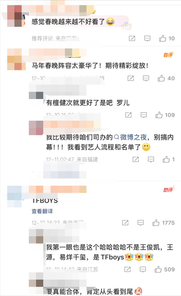网友们纷纷在评论区里喊话,强烈呼吁自己的偶像能出现在春晚的节目单上。